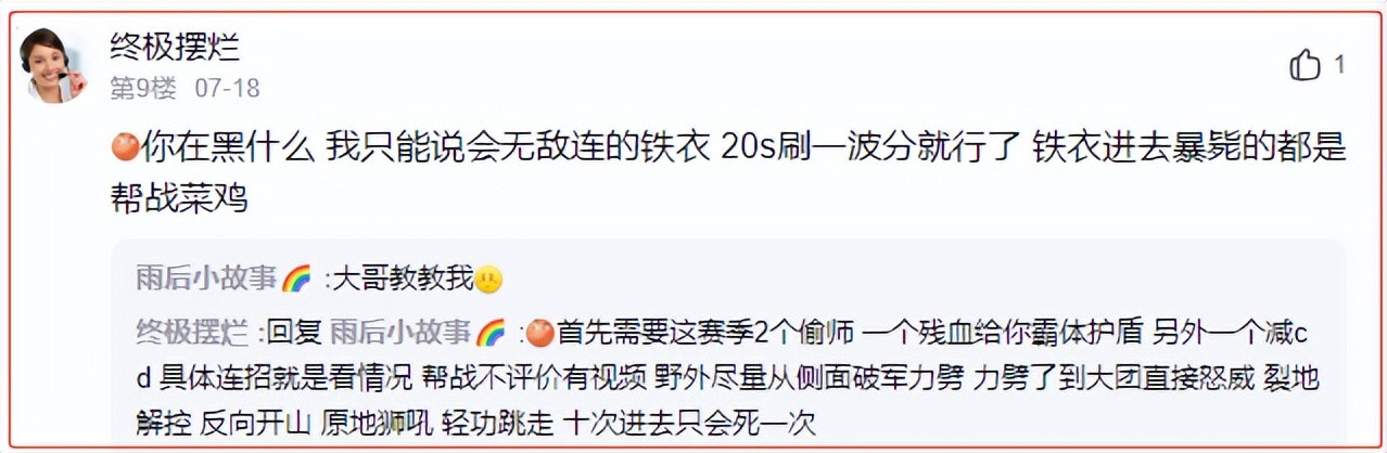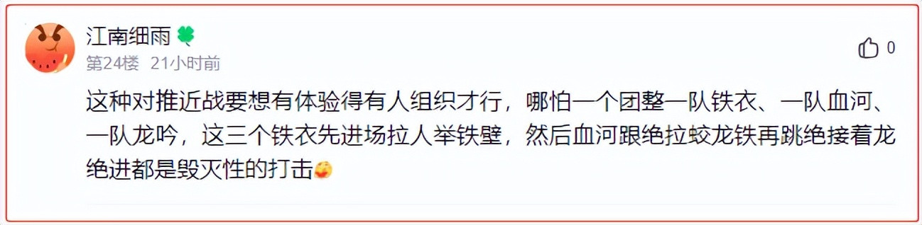 而这种抱怨,也引起了不少玩家们的揶揄。有人表示:战斗规模大成这样,近战没体验也正常。实在不行就猥琐点从侧面切人呗,直接正面冲,谁能扛得住啊?真以为自己是氪金游戏里以一当千的神豪啊?