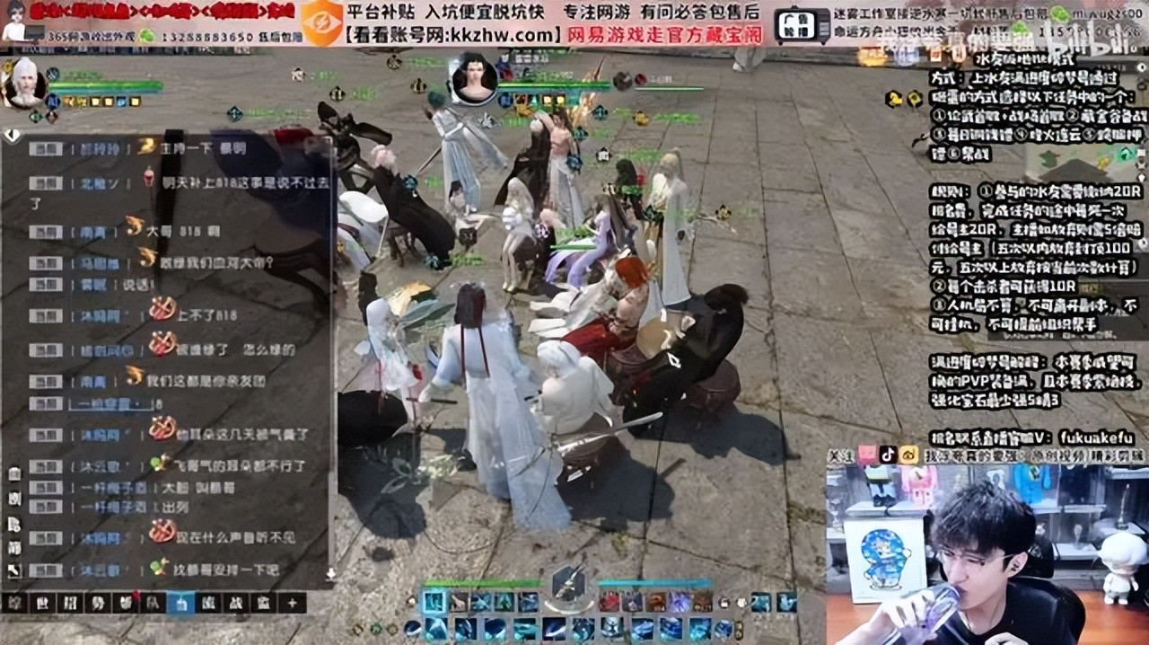 没想到浮夸刚拿上板凳坐下来嗑瓜子听八卦,紧接着又有无数路过庙会的小伙伴耳内雷达接收到信号,大家都搬来小板凳听八卦,就这样这个八卦会从原先的3人八卦,变成服务器几百号玩家聚众吃瓜,故事的男女主角接受群众们的批判之余,还顺势小火了一把……