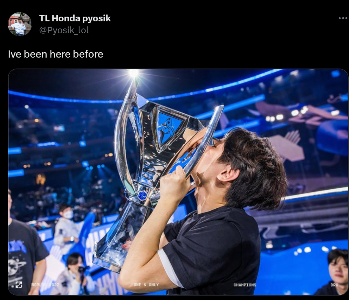 延迟播报一下:在他的冠军队友还在苦苦挣扎的时候,Pyosik所在的TL已经确定了今年的世界赛名额