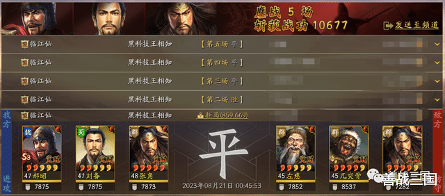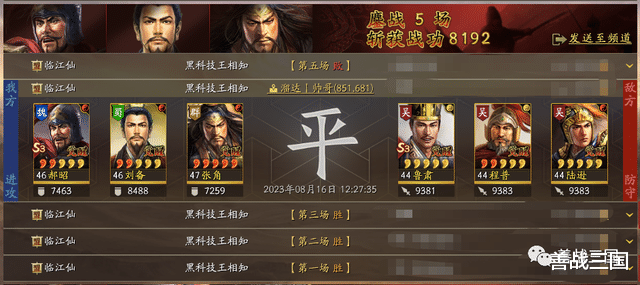 以上就是阵容整体优劣势的对战效果,最大劣势还是高满红阵容带火,还有偶尔张角发挥失常会打个劣平,不过这个等级还不是最佳状态,张角到了50级才能开始乱杀,后续再给大家分享一次满级效果