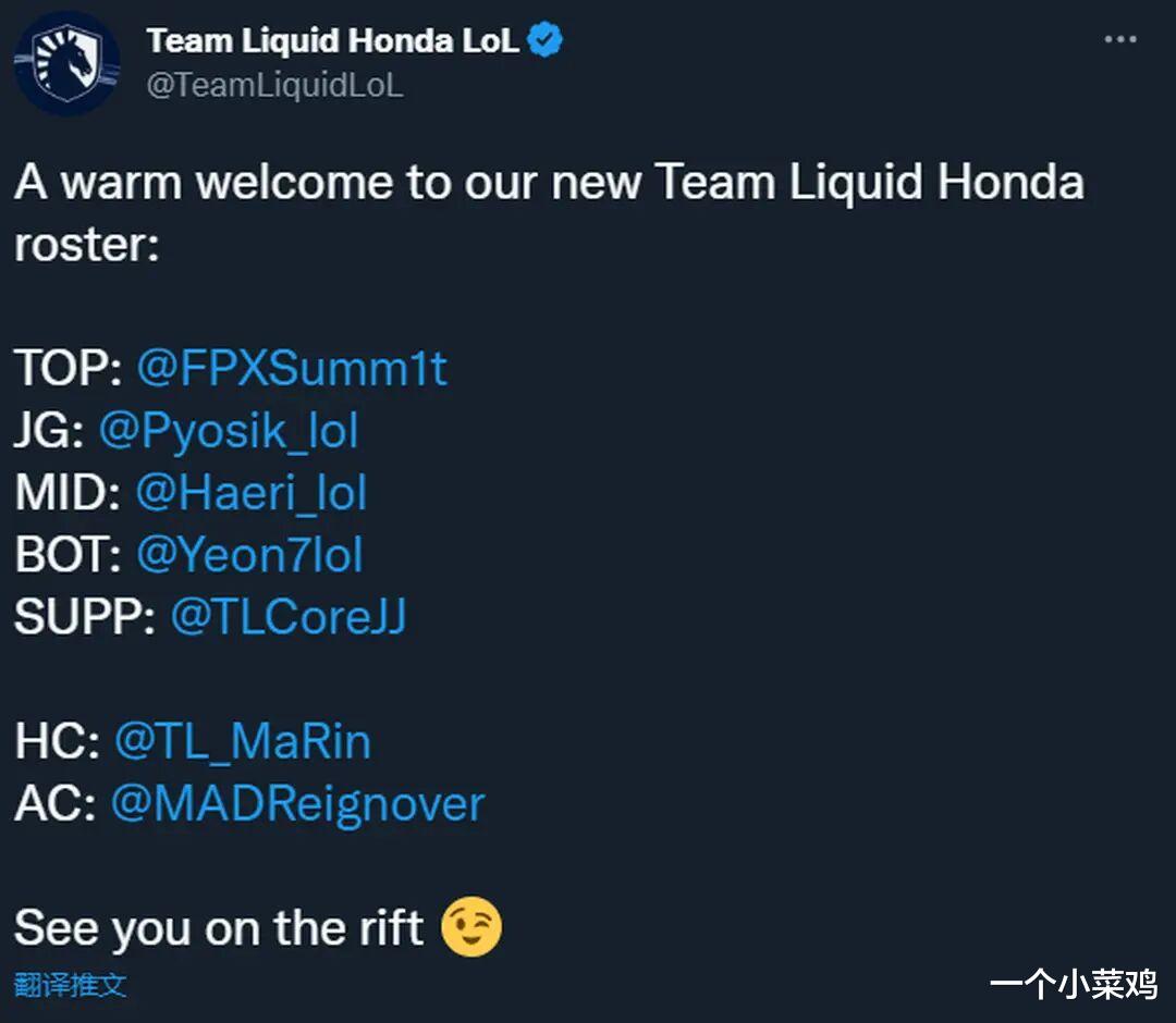 总的来说,TL的这个新赛季阵容确实挺梦幻的,也挺容易出成绩,LCS已经烂完了,这支阵容已经称得上是豪华,LCS赛区限定版银河战舰。希望HLE和TL明年都能进世界赛吧,对观众来说这才是最有趣的,时隔一年的交锋,到时候话题热度绝对都会拉满。
