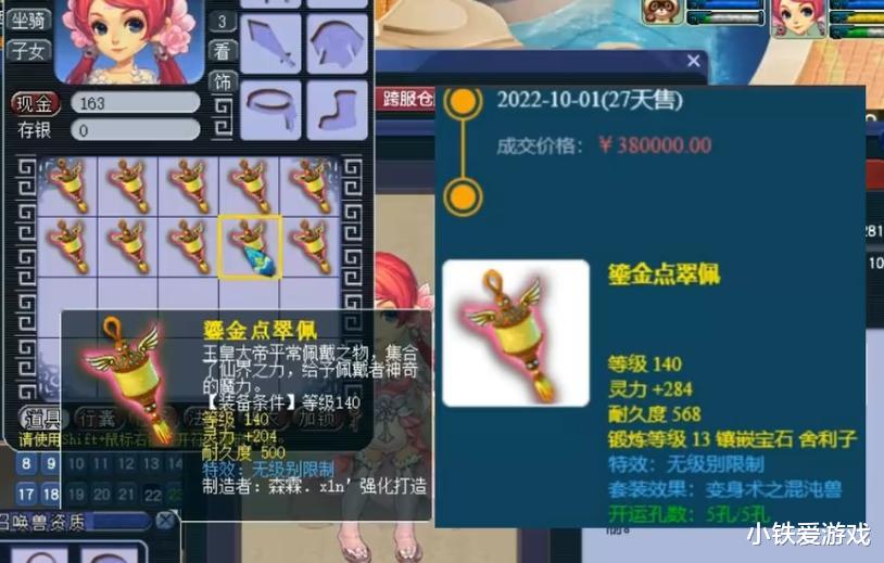 梧桐的运气跟以前是截然不同,以前他最搞笑的就是手气差,然后就是经常搞事。动不动把善恶有报兽决吸成点化石,然后啪啪给自己来几个耳光。现在运气好了,普通的国标无级别都不要,10条140级的项链,炸出来就是大爆灵力的极品!204初灵,比国标高了23点啊。对比一下藏宝阁上的交易记录,有一条13锻、混沌兽套装初灵206的,以38沓的价格成交了。差2点灵力和套装,这卖个33沓绝对稳妥。
