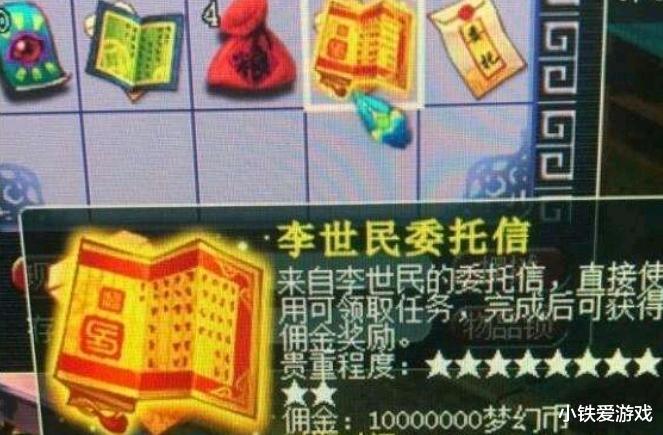 口袋版的物品产出是非常夸张的,每天做做那几个不会亏的任务,来来回回可能就是亏点三界功绩。对于缺经验、需要升级的角色来说很有必要,产出的物品要么卖掉,要么自己用。不过660精力的委托信就真的是搏一搏,一般都是60万游戏币的奖励任务,结果这个狗托玩家运气太好了,直接开出奖励最高的李世民委托信。任务完成的难度很低,就算是没修炼的号,带个攻宠都能打赢。