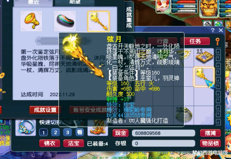第3把,160级长杖。这位玩家第1次鉴定弦月,就喜提物理系的梦想武器!