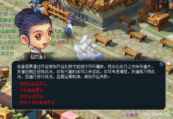 2009年12月1日,梦幻西游长安城书店附近(487,78)处新增“仙符道人”,供玩家对装备进行开运、合成符石,而他的出现也意味着梦幻西游进入了“符石时代”。