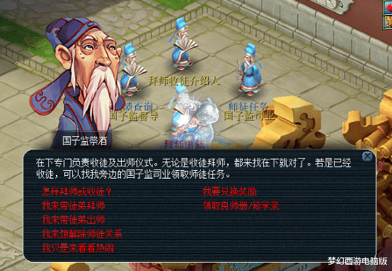 2004年12月1日,梦幻西游师徒系统正式问世。该系统一经推出便迅速火遍三界,不少达到60级的玩家纷纷前往东海湾,只为找到“心仪”的弟子。而那些刚刚进入梦幻西游世界的“准新人”,也在师傅的帮战的下逐渐学会了抓鬼、师门、扫塔。