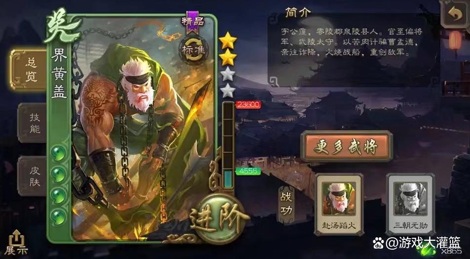我们可以来看下界黄盖的技能,来验证一下上述观点的准确性: