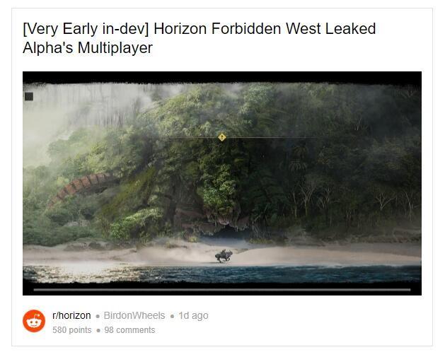 根据这位匿名发帖者的说法,这段视频来自2020年夏天的一个“非常古老的Alpha”版本。据称这和上个月开始在网上流传的《地平线:西之绝境》Alpha预览版是一样的。一位了解该项目的人士告诉VGC,他们认为这段视频和艺术图确实是来自于该作品的。