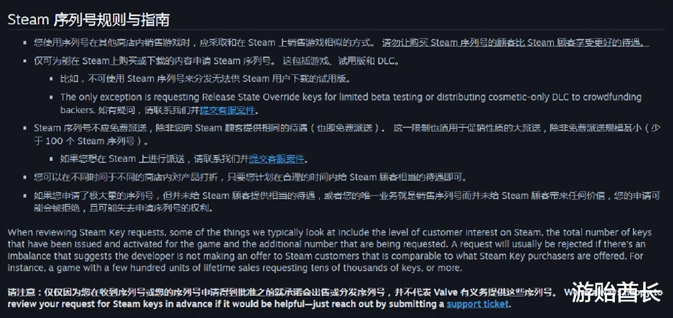 Steam平台更新序列号(key/激活码)规则和指南,对序列号的申请、发放等操作进行不同程度的要求,这或许是在对第三方市场的key交易进行约束限制。