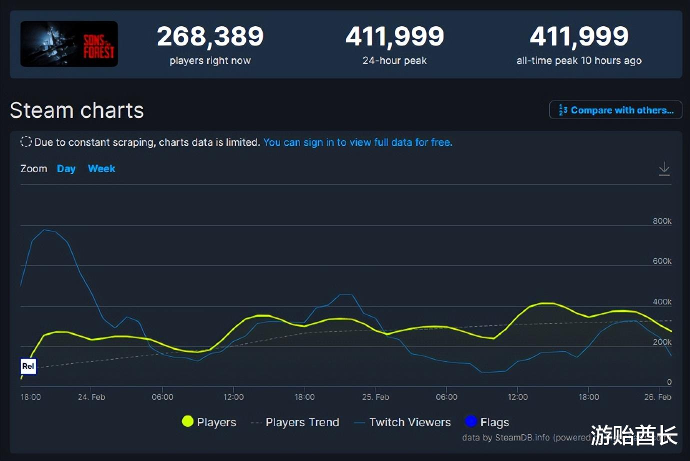 8.《森林之子》在线人数峰值达到41.1万人