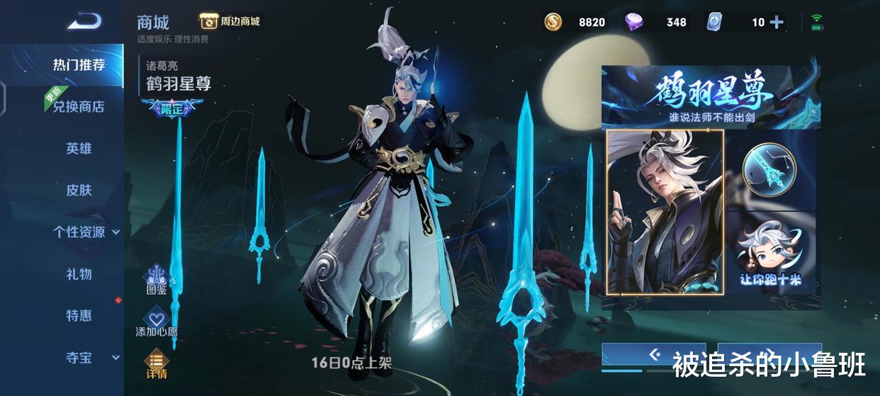 首先诸葛亮的新皮肤鹤羽星尊会在十六日零点上架游戏内,同时还有头像框、个性按键、个性动作,和静动动态表情,这里有个坑要让大家避一避,就是这个绝代智谋礼包,其中驭鹤凌云这个移动个性动作很多小伙伴都想要,千万别抽哈,就这这概率20点券一次,二百二十五才封顶,运气差的小伙伴,一个动作,三个诸葛亮皮肤就没了。