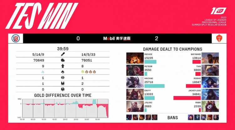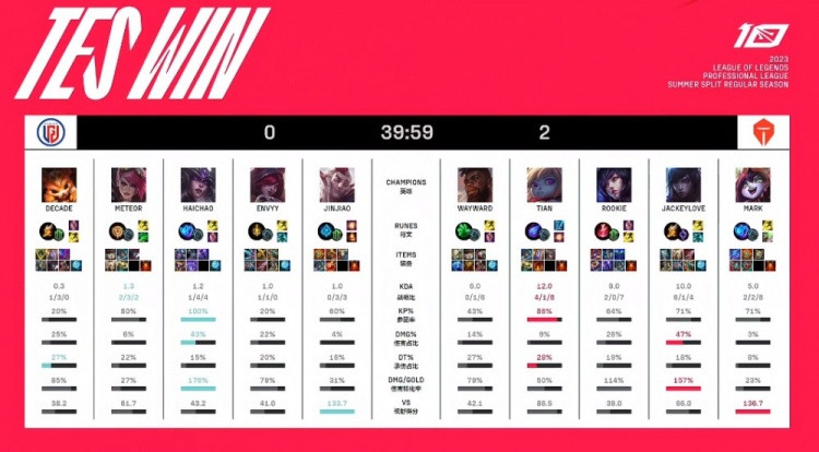 红色方TES:Wayward奎桑提、Tian波比、Rookie狐狸、JackeyLove厄斐琉斯、Mark璐璐