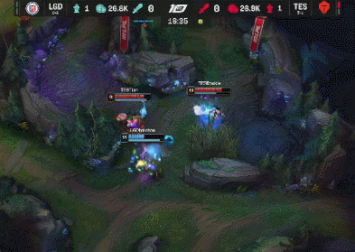 [16:29]LGD上半野区,辛德拉被狐狸E到后波比接壁咚收掉辛德拉一血,随后纳尔赶来收掉波比人头,中路璐璐给厄斐琉斯R保住兄弟一命,上路纳尔拆掉TES一塔后变大与奎桑提单挑,纳尔无处可逃,波比慢慢来到上路收掉纳尔的人头。