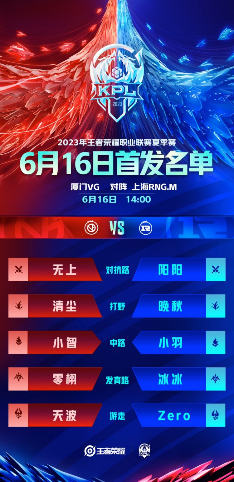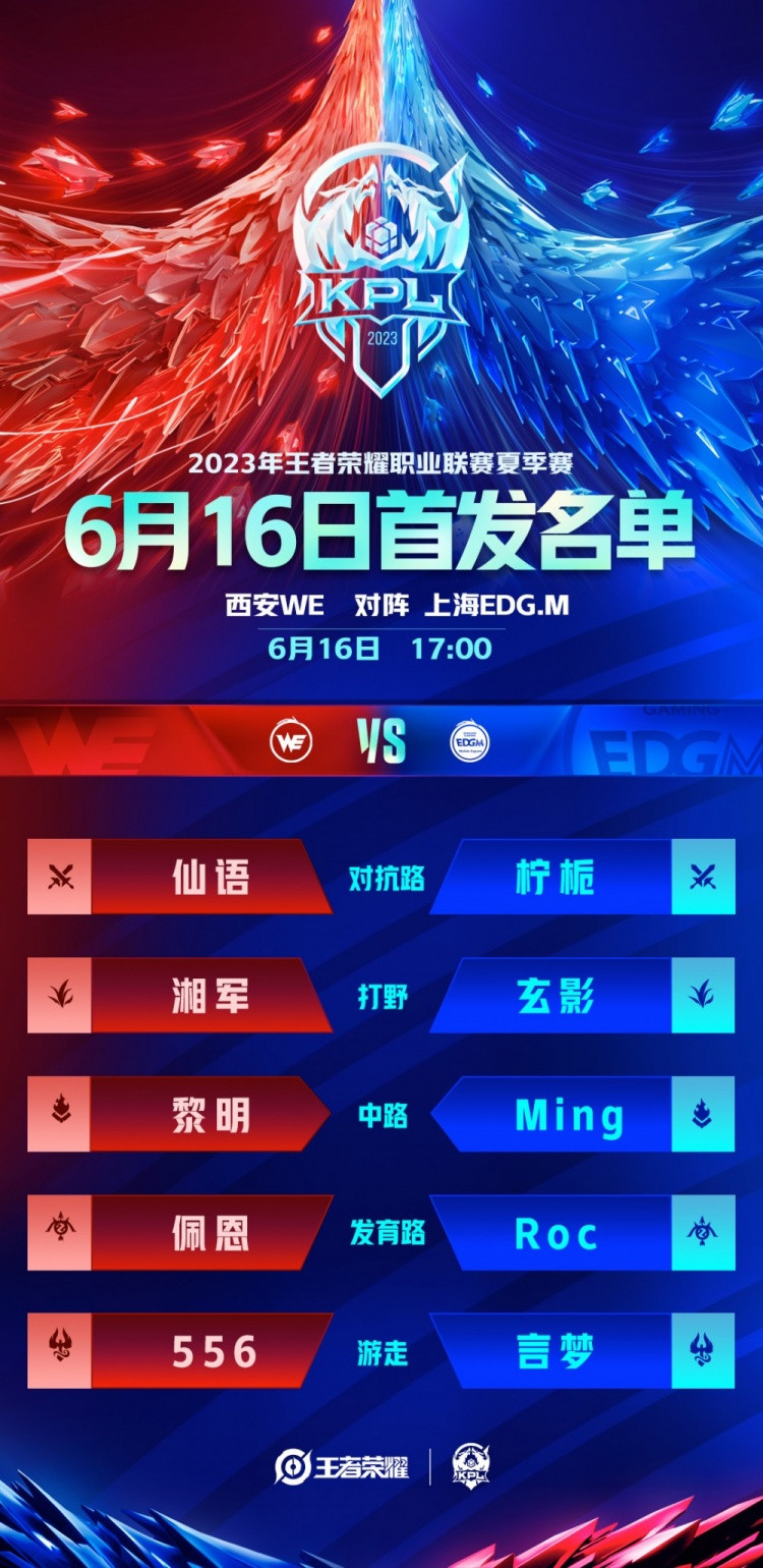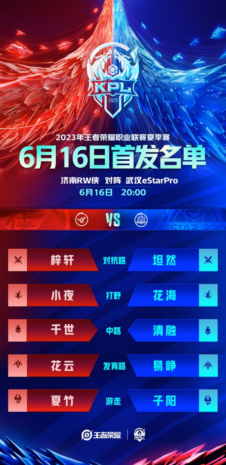 直播吧6月16日讯 2023KPL夏季赛常规赛第一轮W1D3有三场对决,赛前KPL赛事官博公布今日首发名单。