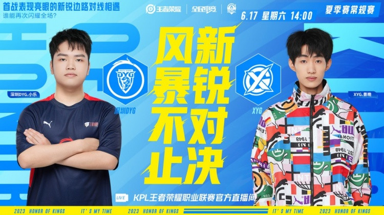 DYG首战战胜强敌南京Hero久竞,两位“小字辈”新人赛场表现惊艳;首战遗憾失利的XYG电子竞技俱乐部本场对抗路首发同为新人的XYG.景晚,青春风暴正面相抗,谁将带队斩获本场胜利?