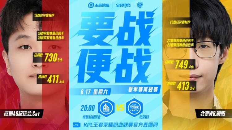 历史交手14次的老对手赛场再相遇,是首战强势零封对手表现亮眼的成都AG超玩会新的五人组合战胜北京WB再取一分,还是北京WB王者荣耀分部觉醒实力拿下胜利、避免开局两连败的不利情况?