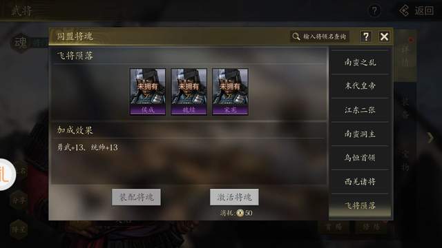 那些在玩家们的固定思维模式里没什么用的三国武将,还因为《军令如山:王者之心》的将魂系统而实现了价值。比如抓捕吕布的魏续、宋宪、侯成,他们三个合在一起就是飞将陨落效果,这样的案例还有很多,搜集本身就是一种乐趣。
