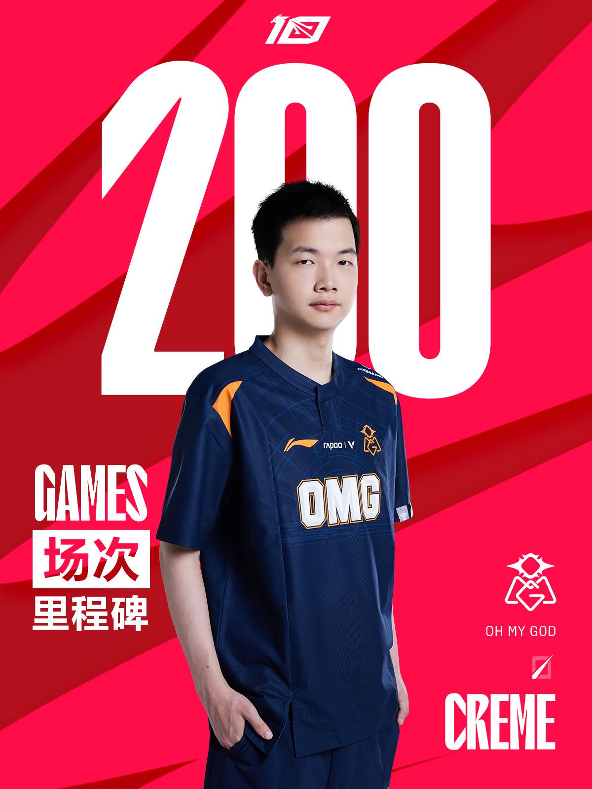 在今日OMG对阵IG的比赛中,@omg-creme 使用阿卡丽达成了在LPL的第200场,是中路位第18位达成该成就的选手,恭喜Creme!