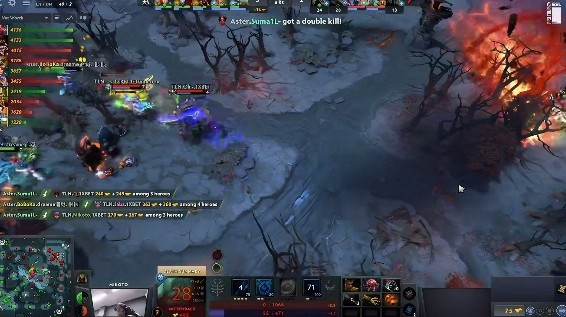 [28:00]Talon上路推进,23龙心猴子带盾上高,破掉了茶队高地防御塔,随后打掉痛苦魔方后退却