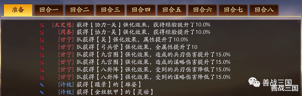 全队搭配两个灵动,度过三回合,这里的诸葛恪可以稳定治疗3500-4500。顺便说下诸葛恪搭配“援其必攻”,给队友带灵动就类似长健首回合触发援其减伤的联动效果,不过这里诸葛恪兵书用的奇正相生