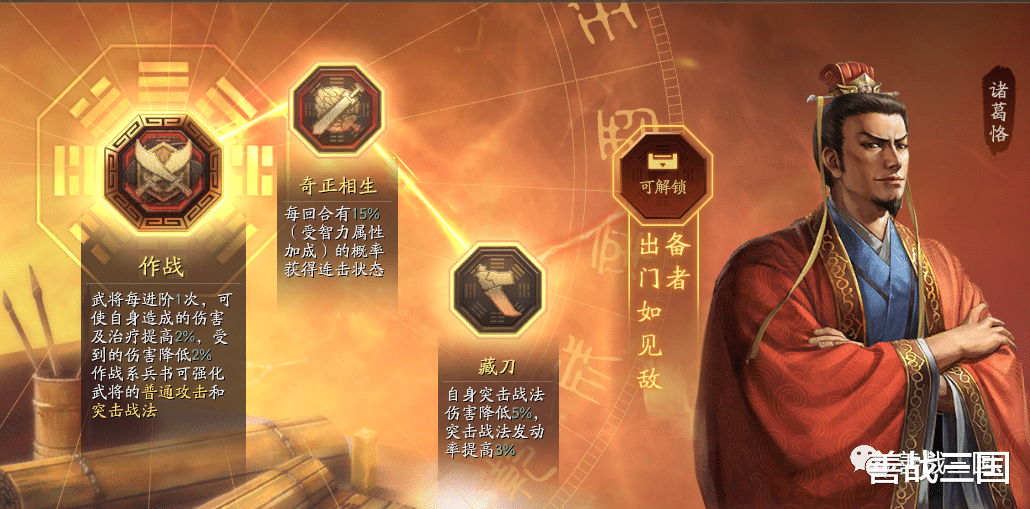最后给策划提个建议:诸葛恪作战类的小兵书加个分险吧,用作战实在没第三兵书可选,除了藏刀,剩下四个全是打伤害的武略、胜战、执锐、文韬,诸葛恪又打不了伤害,这兵书设计的有点不走心了感觉