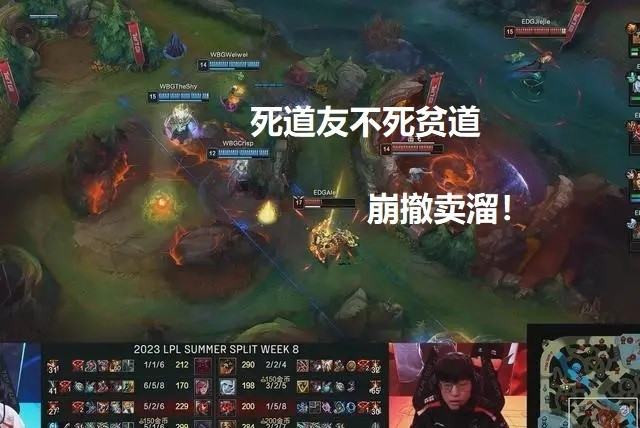 在LPL夏季赛常规赛最后一天,EDG输给了WBG,两支队伍的碰撞多少带有点火气。