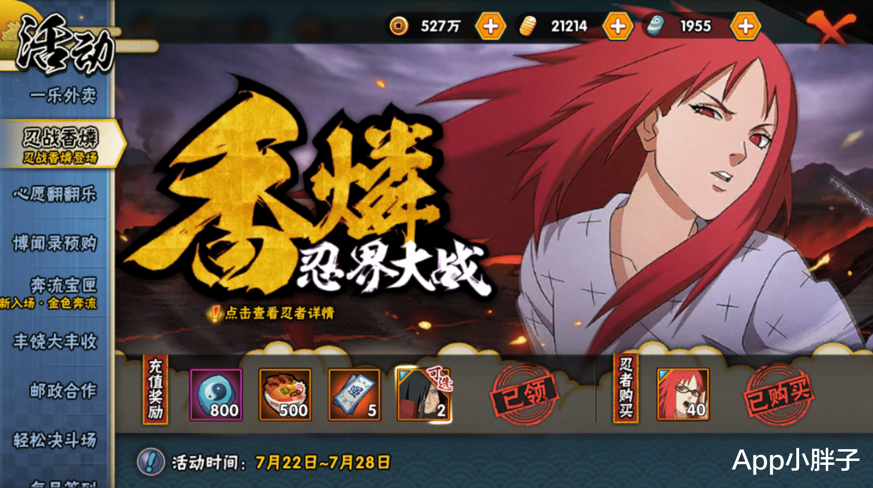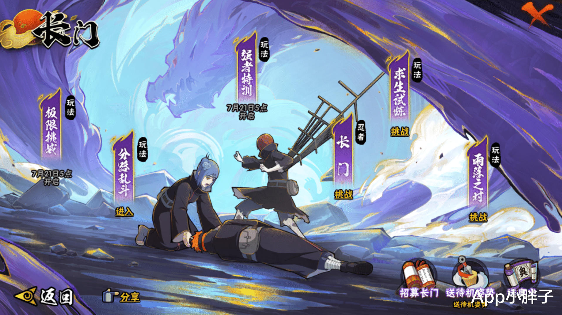 本周除了两个忍者返场以及可能会上架充值活动的山中风以外,还会解锁青年长门专题页面的另外两个活动,分别是强者特训和极限挑战。强者特训的玩法是一共有七个关卡,会随着时间逐步解锁,主要的通关方式就是答题。而极限挑战也算是一个老活动了,使用限定的忍者秘卷和通灵通关,按照时间和被击打的次数进行评分,还会有额外的排行榜奖励,剩下的活动还有佐助的生日会、天天爱美食以及纲手的挑战。