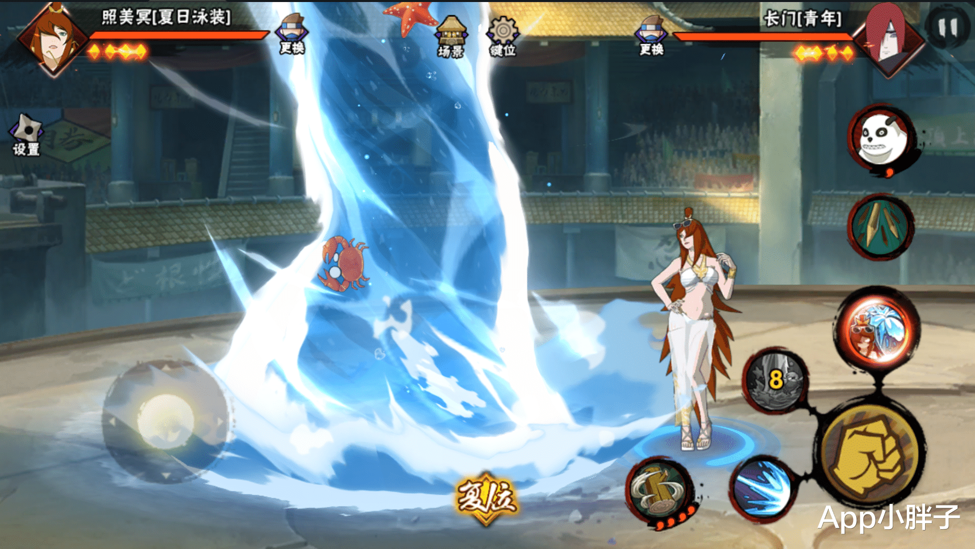 另外,本周还会返场一个前段时间调整过的泳装照美冥。这个忍者上次改动的地方主要是两个,第一个就是改来改去的喝饮料机制,现在起码是回归到了一个比较正常的触发形式,技能后长按普攻就可以掏出饮料,然后在你技能后点普攻掏出饮料的过程中是不会被普攻打断了。第二个改动是略微提升了二技能水阵柱的距离,可以让你有更远的起手能力,但也只是细微的变化。按照节奏点普攻的无限水鞭可以实现拉扯效果,但需要把控站位,尽量拉开身位,让对方的位置处于水鞭的极限距离。对于泳装照美冥,我的看法就是伤害不低,简单易上手,但没有太高的优先级。