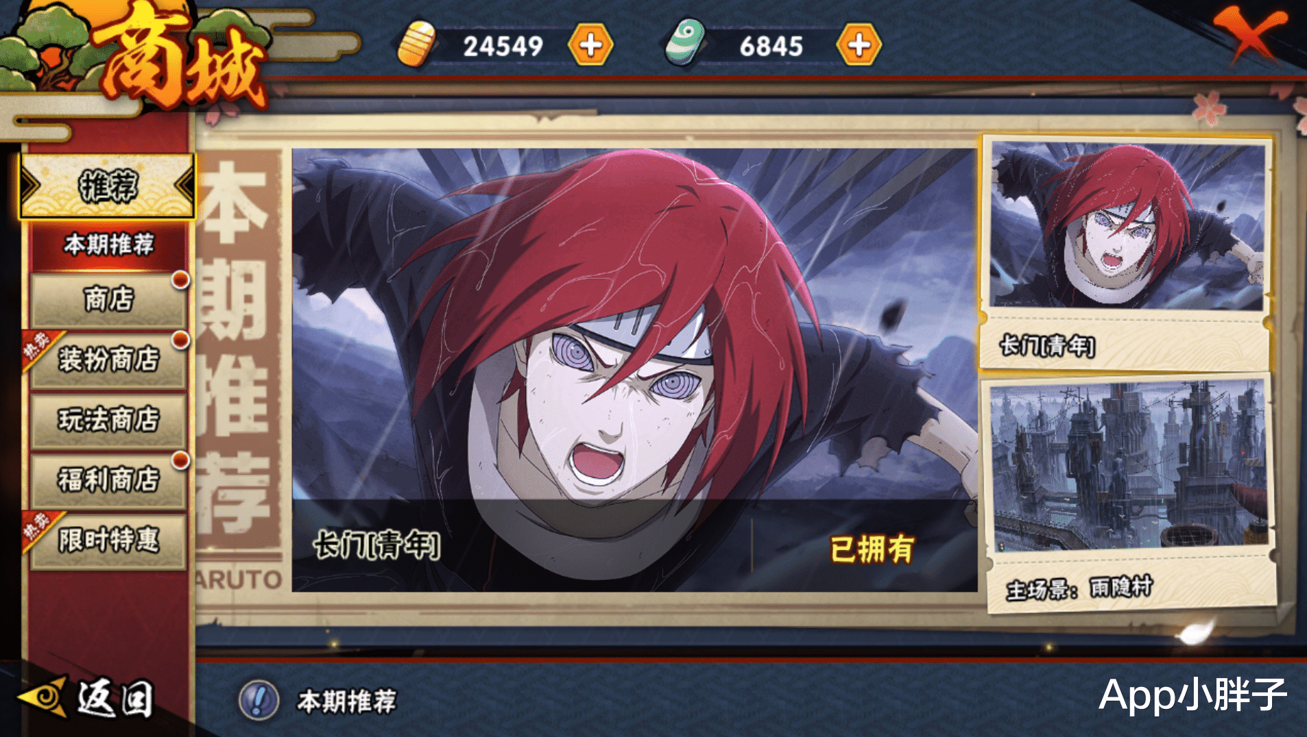 在青年长门上架后不久,跳票了一段时间的山中风全技能就放出了。本来按照爆料时间来分析,山中风会在周五上线,但游戏内的公告并没有提到这个忍者,现在就只有一个可能了,那就是山中风按照之前圣诞忍者的形式,先充50解锁购买资格,然后再消耗1980金币购买。因为只有这个活动不会提前在公告里出现,而这个购买形式对于卡在月底特惠续费月卡的玩家来说还是比较友好的,相当于你是正常续费月卡,忍者只需要花费1980金币就行了。但对于一些不打算续费月卡或者是没到续费时间的玩家,这个购买形式就没那么友好了。(下图是忍战香燐第一次上架的招募形式)
