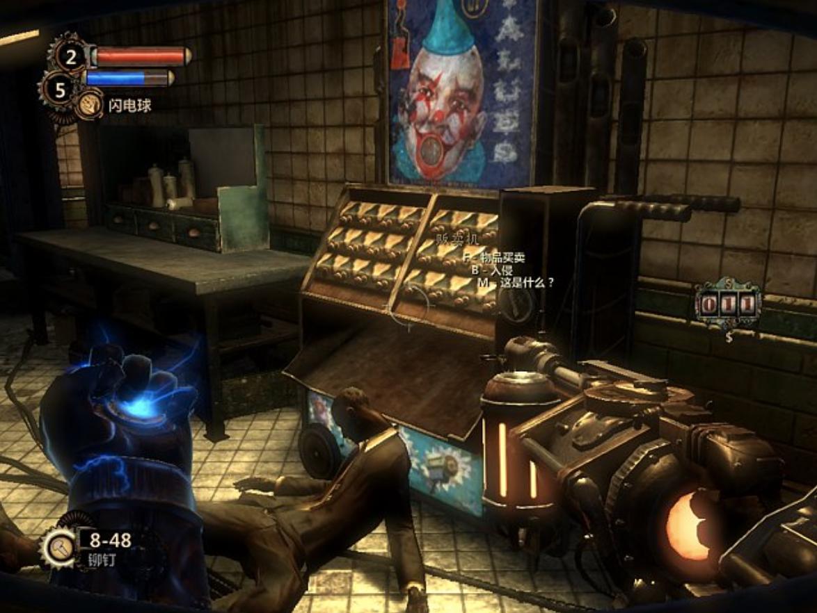 这款作品的美术毫无疑问是一流的,从角色、场景、武器、光影、特殊效果的设计,都相当优秀。尤其海底城的设计,以60年代的风格为基础,幻想出一些极华丽或诡异的场景,在废弃的极乐城中,阴暗的光影气氛营造,都很能让玩家融入其中。尤其部分章节会遇到水淹海底城的剧情,波涛汹涌的场景,很让玩家紧张。再加上偶尔出现的60年代音乐,有点爵士、有点蓝调,让气氛增色不少。