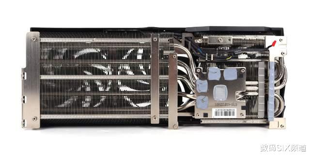 金属材质背板有助于提高PCB强度,接近一半面积的大镂空,通过鳍片能看到大概一个半扇叶,再配合背板内侧的多个排导热垫,能够起到很直观的辅助散热的作用。