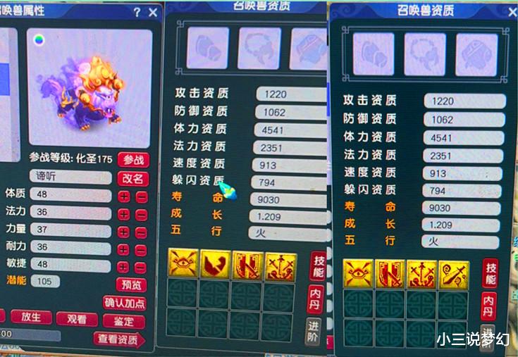 上面是一只拥有着4个红书技能的谛听,这只谛听合出来以后打了一本书就打成了四特殊,这只四特殊的谛听打造完成以后用这个观照万象,壁垒击破,剑荡四方和惊心一剑。别看这只召唤兽没有夜战,没有偷袭,没有必杀。上面的这只召唤兽在单人PK玩法中能够打出去的输出数据真的很高,尤其是给方村山使用,方村山控制住了对方的单位以后,再使用上面的这只谛听,一层赤焰战笛状态下的谛听是可以打出毁天灭地的伤害的。
