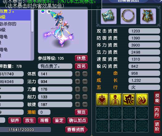 接着就是129级的配置,推荐221阵容是有理由的,这个阵容有奶有封有输出,先说下这个配置优先配置哪一些。首先人物主修炼以及宝宝修炼一定要在预算范围内尽量达到最高,第二是最起码要有一组看的过去的须弥,推荐高魔爆波敏须弥,最低也要高魔须弥压阵,最后就是细节了,比如装备动物套四孔等。