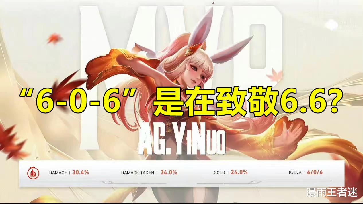 而且一诺公孙离的赛后数据也挺有意思的!有不少网友直言,一诺这是在用公孙离的数据致敬老搭档6.6啊?怎么一回事呢?原来,一诺公孙离打出了“6-0-6”的数据,这让人很自然就想到了一诺的老大哥6.6。当然,调侃归调侃!不过,很负责地说,如果一诺一直保持这样的状态,那AG超玩会这一届世冠不敢说他们能够走多远,最起码争取个世冠正赛还是没有多大问题的。但一诺的状态从来都是起伏不定的!
