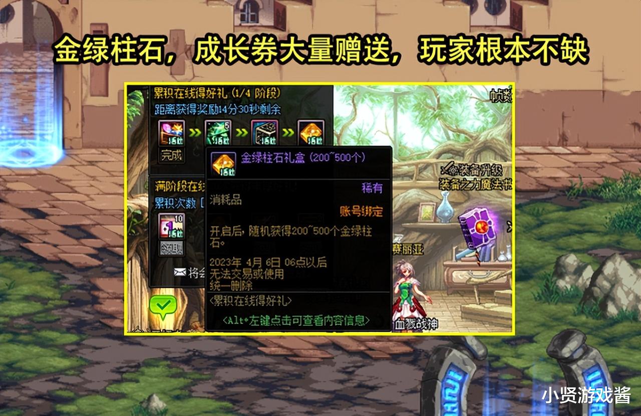面对需求量如此之高,在后续的版本中,策划也是大大增加了金绿柱石的获得途径,例如票本必掉可交易金绿柱石,战神本有概率翻出金绿柱石礼盒(500个),以及活动大量送金绿柱石,装备成长券,完美成长券等等。